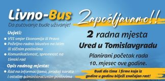 Livno-Bus planira početkom 10. mjeseca otvoriti ured u Tomislavgradu. Sukladno tome raspisuje natječaj za prijem dvije osobe za rad u ovome uredu.
