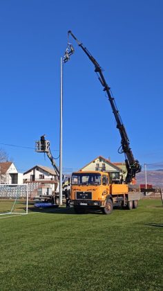 Nakon dužih priprema i današnjih povoljnih vremenskih uvjeta, na gradskom nogometnom stadionu i terenu s umjetnom travom postavljeni su reflektori. Reflektore su postavili djelatnici tvrtke Marel Electric, a asistirali su s velikom dizalicom i djelatnici Čajuša d.o.o. (Ćagić). Visina stupova s reflektorima je 18 metara, pa su ovi radovi zahtijevali izuzetan napor i veliku pažnju izvođača. Na svakom stupu je postavljeno po 6 panela s led rasvjetom snage po 600 W. Vrijedi napomenuti da su i jedni i drugi ove radove izveli bez naknade, pa ih HNK Tomislav srdačno zahvaljuju na pruženoj podršci.