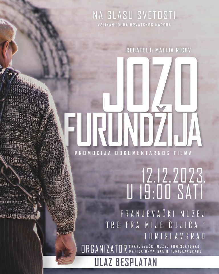 Film će biti prikazan u velikoj dvorani ispod Franjevačkog muzeja Tomislavgrad u utorak 12.12.2023. u 19h. Ulaz je besplatan!