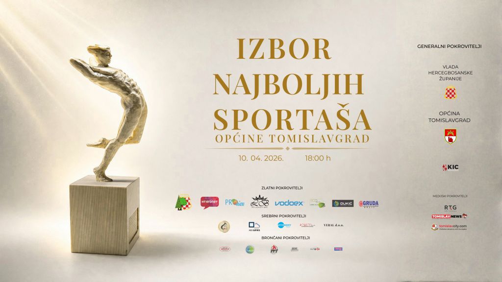 Izbor najboljih sportaša općine Tomislavgrad održat će se u petak, 10. travnja 2026. godine u 18:00 sati u kino dvorani Kulturno-informativnog centra Tomislavgrad.