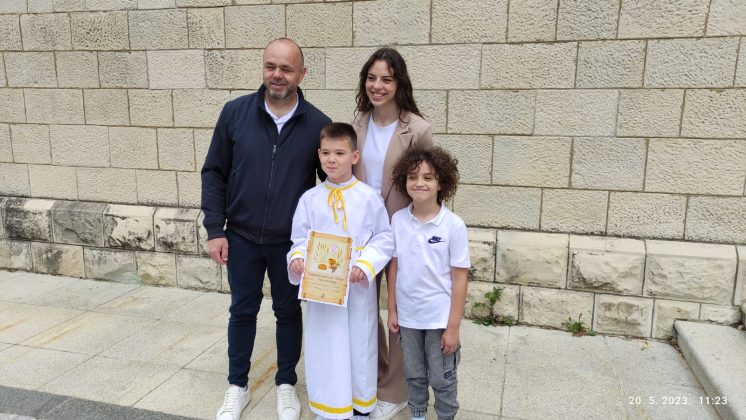 Našim prvopričesnicima i njihovim roditeljima kao i cijeloj našoj župnoj zajednici čestitamo na ovom danu i želimo radostan i blagoslovljen dan.