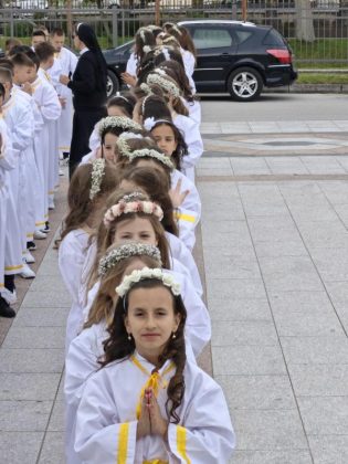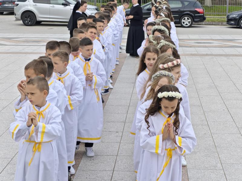 Sakrament Prve svete pričesti u Tomislavgradu danas prima 64-ero djece, 30 djevojčica i 34 dječaka. Za ovaj sakrament kroz proteklu vjeronaučnu godinu pripremala ih je č.s. Ilijana Radoš.