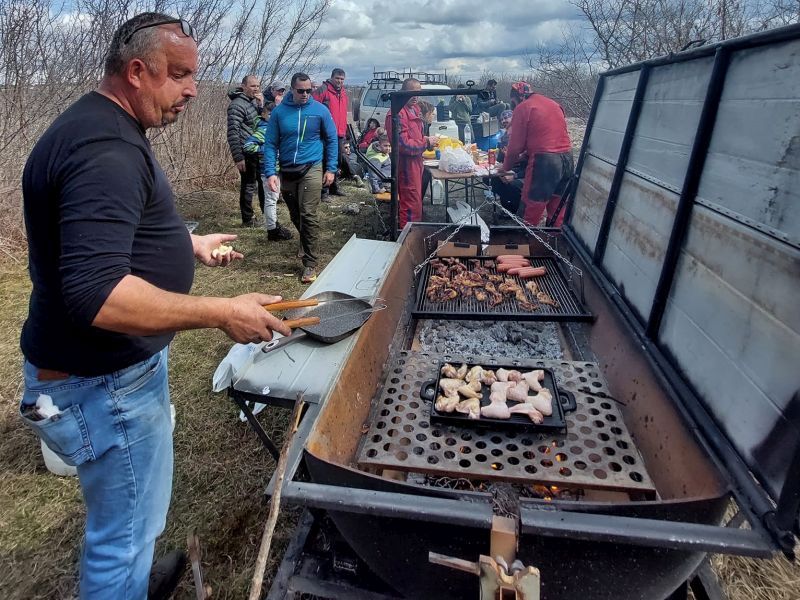 Nakon uspješnog izlaska iz špilje i vrtače, druženje se nastavilo na platou iznad Malog Samograda uz “roštilj na točkovima” – originalni izum našeg Mirka Šarca – Miće koji je nahranio 30 gladnih speleologa, jer su nam se priključile i kolege iz Speleološkog društva “HERCEG”, Mostar , čiji su ovogodišnji polaznici imali priliku posjetiti špilju Dahnu.