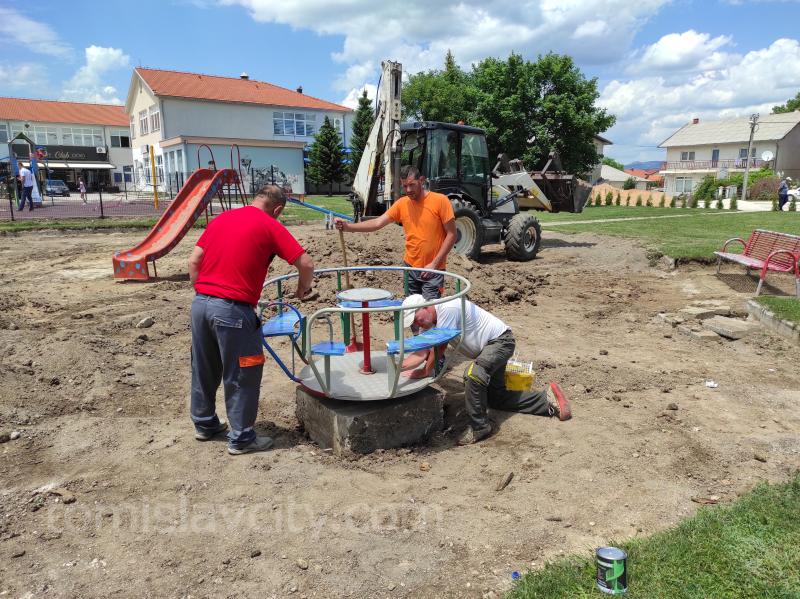 Nakon što su završeni radovi na novom dječjem igralištu koje se nalazi na Trgu dr. Franje Tuđmana, koje izvodili su djelatnici poduzeća Ćićko Max d.o.o., ovih dana djelatnici JKP Tomislavgrad završavaju s uređenjem i staroga dječjeg igrališta.