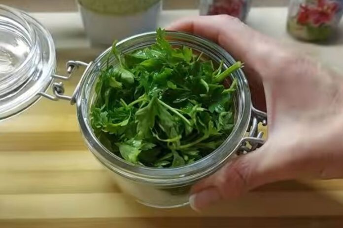 Čuvajte posudu s peršinom u frižideru. Tako se može čuvati mjesec dana. Zahvaljujući ovome triku, peršin će zadržati svježinu, aromu i okus.