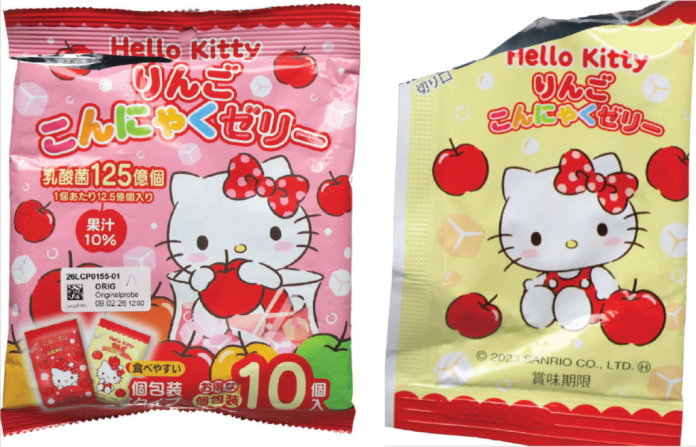 Riječ je o gumenim bombonima “Hello Kitty Apfel Koniac Gelee”, pakovanje od 150 grama.
