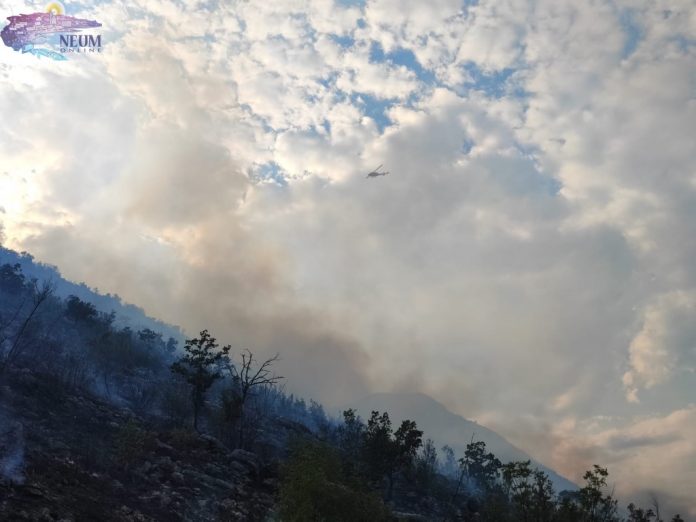 Osim helikoptera Oružanih snaga koji je stigo, na terenu su vatrogasci iz Neuma i okolnih općina, kao i brojni mještani.