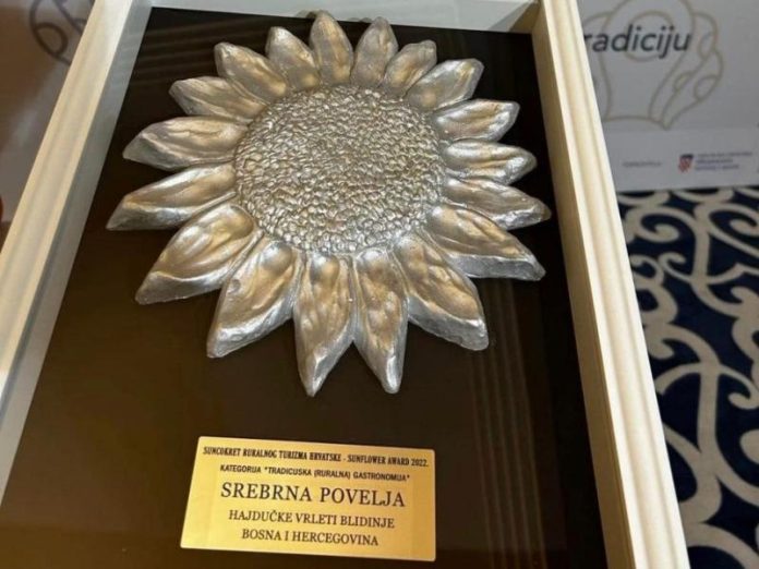Hrvatska udruga za turizam i ruralni razvoj “Klub članova Selo” na svečanosti u utorak, 28. veljače dodijelila je 70 povelja i posebnih priznanja u sklopu nacionalne nagrade “Suncokret ruralnog turizma Hrvatske”, a po prvi put u izbor su uključeni i predstavnici iz Bosne i Hercegovine. Od 160 ukupno prijavljenih projekata, 18 je stiglo iz BiH. Na svečanoj dodjeli nagrada srebrnu povelju u kategoriji “Tradicijska gastronomija” osvojile su “Hajdučke vrleti”.