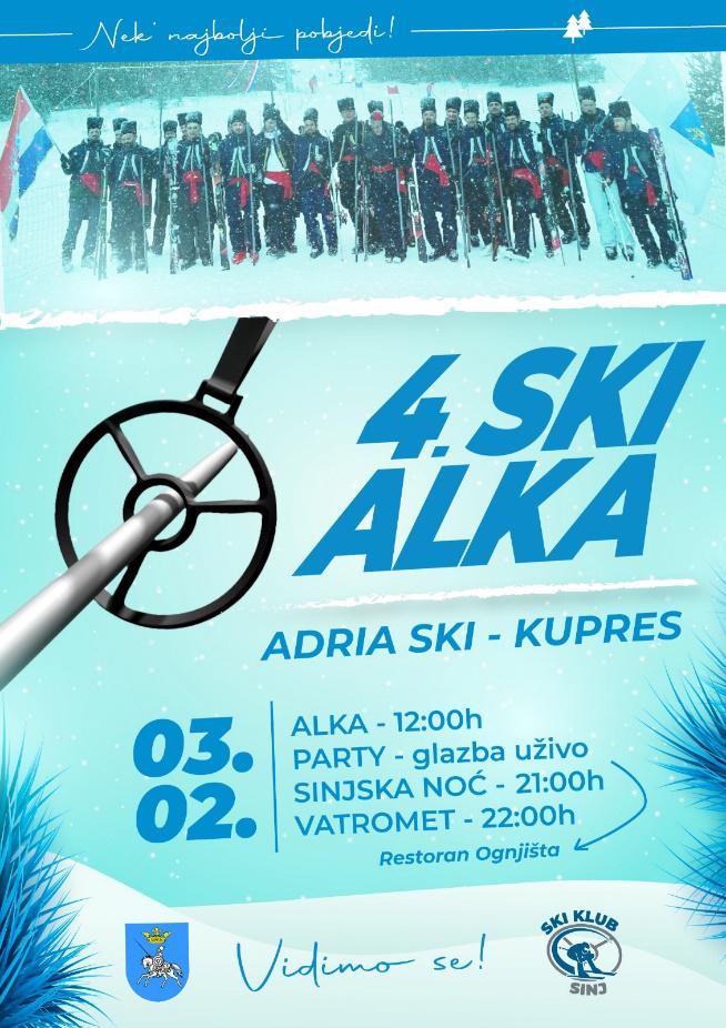 Ski klub Sinj i ove godine u suradnji sa ŠRC Adria Ski Kupres organizira Skijašku alku koja će se održati u subotu, 3. veljače s početkom u 12 sati.