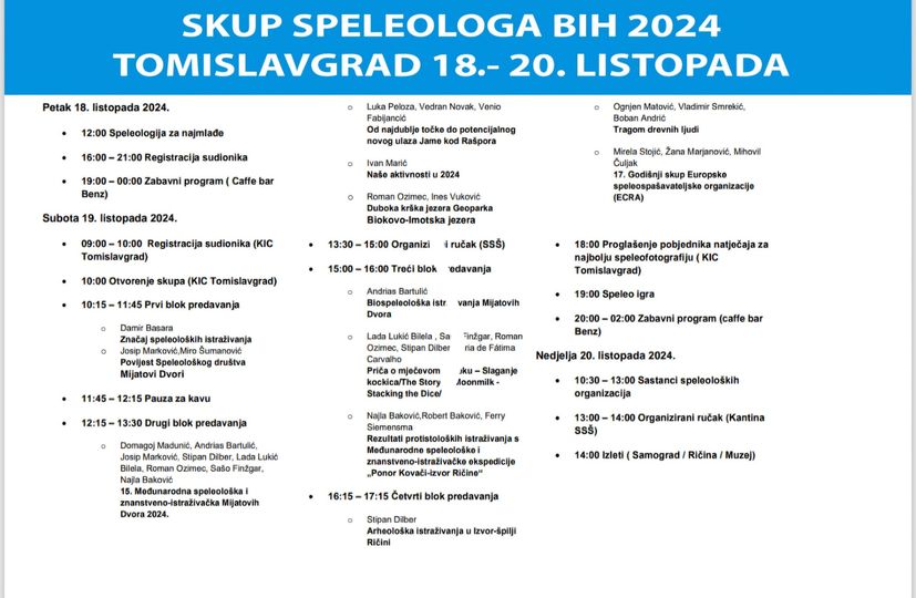 Program ovoga skupa počinje danas u 12 sati u gradskoj kinodvorani gdje će biti upriličen program pod nazivom “Speleologija za najmlađe”.