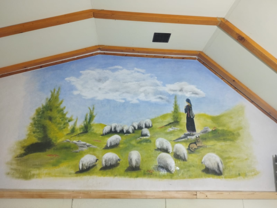 Ovih se dana Bože predstavio i novim umjetničkim uratkom – muralom u obiteljskoj kući u Dobrićima. Mural ili zidno slikarstvo (od španjolske riječi „muro“ što znači „zid“) označava svaku vrstu slikanja na površini zida ili drugoj velikoj trajnoj podlozi. Današnji murali slikaju se različitim tehnikama, uljanim ili vodenim bojama. Sliku na zidu interijera obiteljske kuće u Dobrićima Bože je naslikao vodenim bojama i prikazuje nekadašnje stočarstvo u buškoblatskom kraju – pašnjak, ovce i mladu pastiricu, koja je obučena u tradicionalnu žensku buškoblatsku narodnu nošnju.