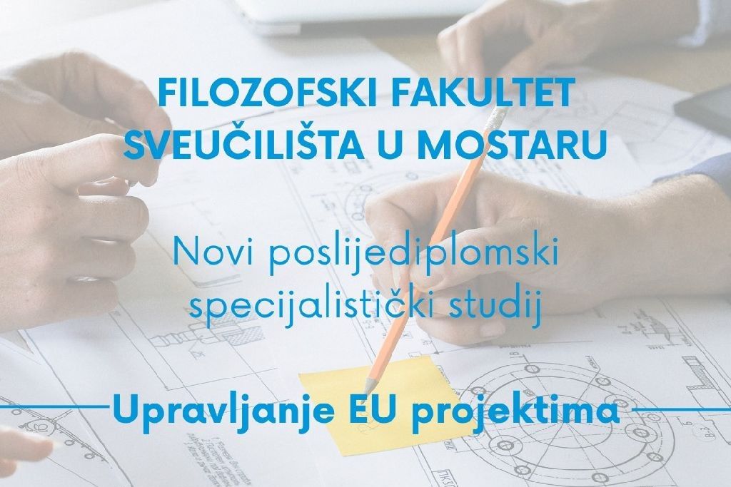 Filozofski fakultet Sveučilišta u Mostaru pokreće novi poslijediplomski sveučilišni specijalistički studij Upravljanje projektima Europske unije, a upisi započinju u veljači 2026. godine.