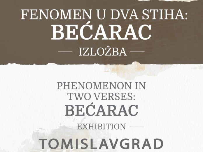 Izložba „Fenomen u dva stiha – bećarac“ ima za cilj predstaviti bećarac kao narodnu baštinu koja izranja iz prošlosti i obnavlja se u svakodnevnim situacijama do današnjih dana. Bećarac je predstavljen u tri cijeline: