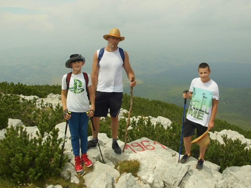 Krenuli smo oko podneva od Omrčenice, hrabro gazeći naprijed. U jednom trenutku čak je postojala bojazan i ideja za odustajanjem jer su se počeli prikupljati oblaci a iz daljine je odjekivala grmljavina, poput česte kanonade jakih topova (kasnije smo saznali da se silna kiša obrušila na Posušje). Nismo se obeshrabrili niti odustali. Kiše, a ni grmljavine, Bogu hvala ovdje ipak nije bilo, no svejedno nije bilo niti dugog zadržavanja na vrhu. Kratko fotografiranje i brzi silazak kući. Na povratku, na ulazu u bukovu šumu uslijedila je okrjepa u vidu jela i pića. A kad si u šumi, apetit se još više pojača… Iako vidljivost zbog sumaglice nije bila najbolja, mali planinari su uživali u pogledu svuda okolo.