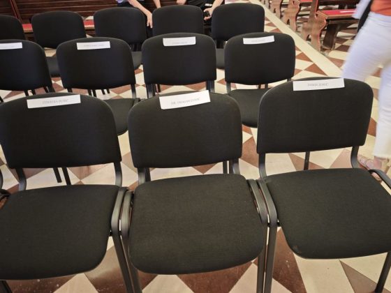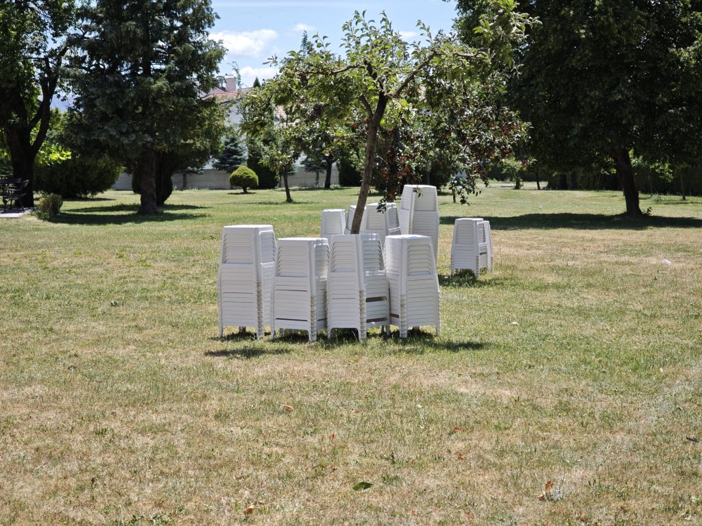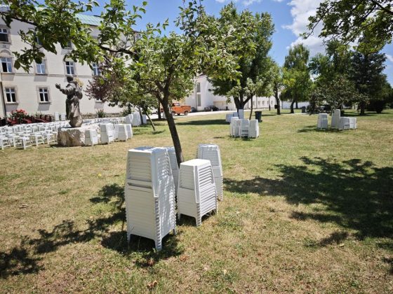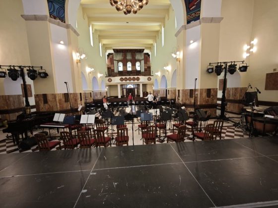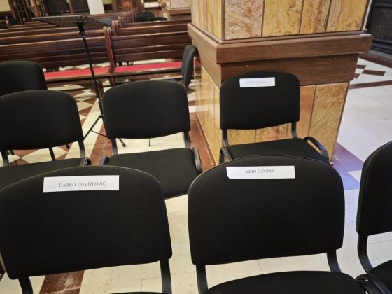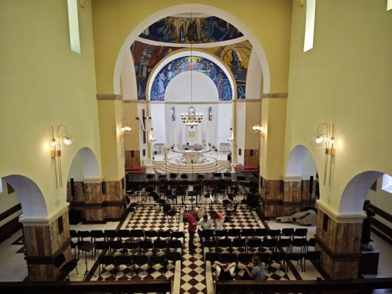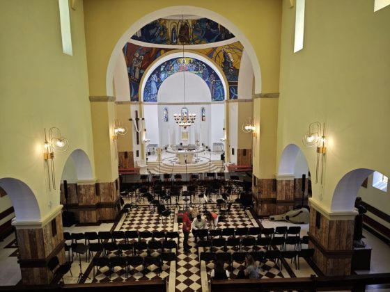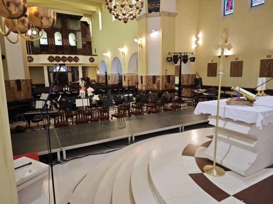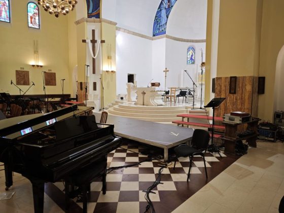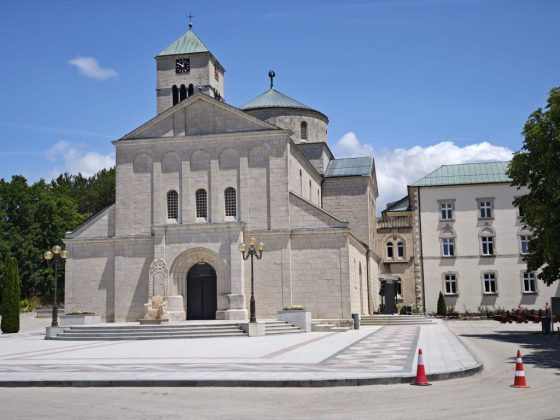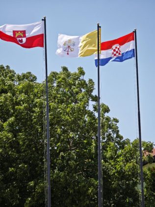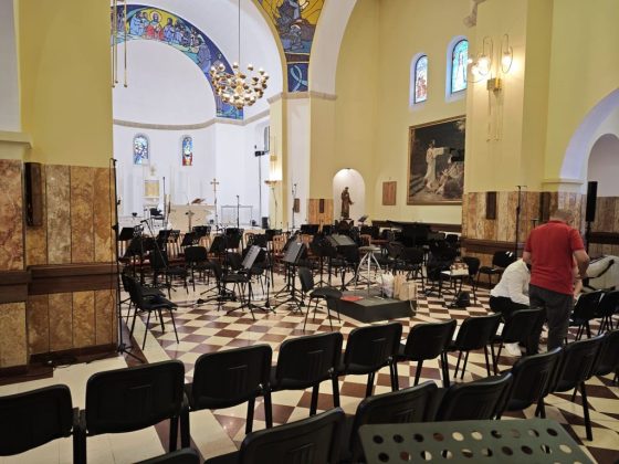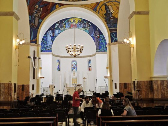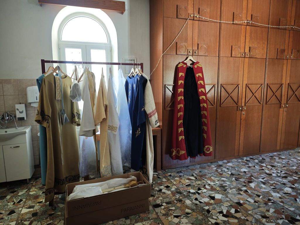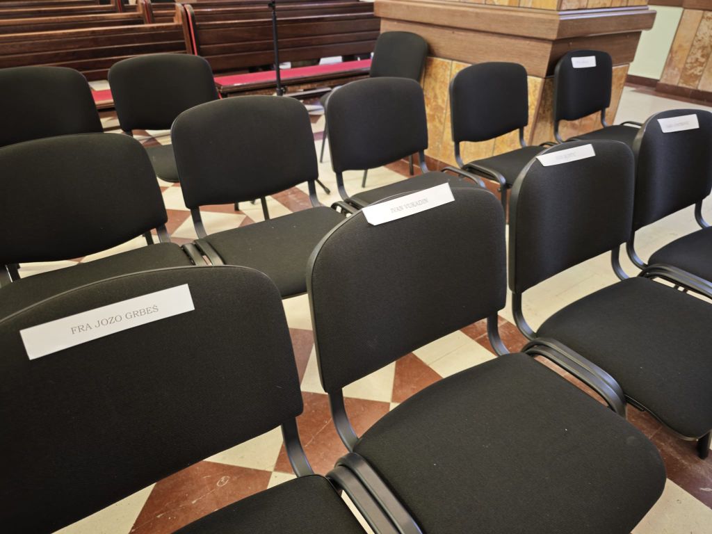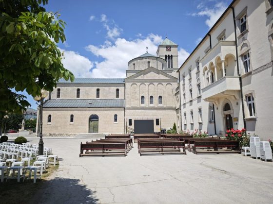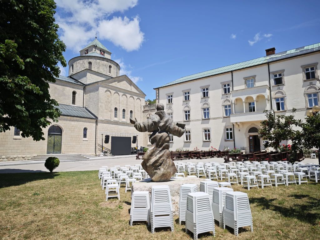 Obišli smo baziliku i prostor oko bazilike kako bi se uvjerili da je sve spremno za ovu gala večer u Tomislavgradu. Scena je pripremljena, kostimi su izglačani, mjesta za svjetovne i crkvene uzvanike se označavaju, a vanjska videozid te klupe i sjedalice u dvorištu, namijenjene za širi puk, čekaju posjetitelje.