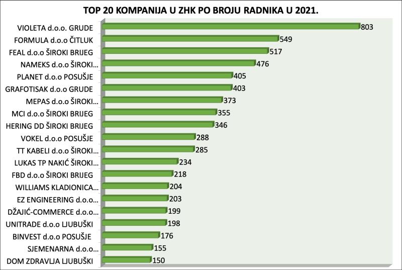 Po broju radnika Violeta je ponovno na prvom mjestu s 803 uposlena, slijedi je FORMULA s 549 i FEAL s 517.