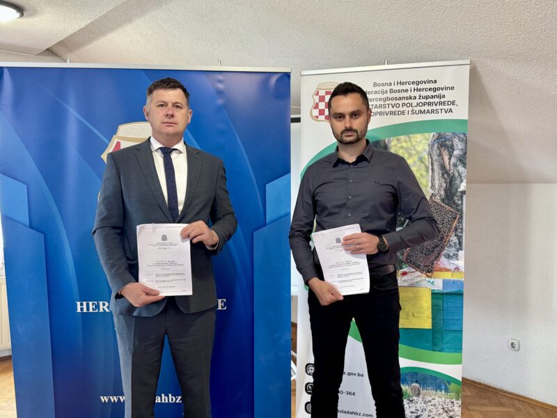 Ministar poljoprivrede, vodoprivrede i šumarstva Hercegbosanske županije Božo Perić danas je potpisao Ugovore o dodjeli lovišta od posebnog interesa za Hercegbosansku županiju s direktorom Šumskog gospodarskog društva „Hercegbosanske šume“ d.o.o. Kupres, Nikolom Perkovićem.