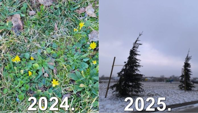 Ako nam se čini da je ovaj siječanj prehladan, onda je to samo zato što smo posljednjih godina navikli na iznimno blage zime. Promjene su vidljive i osjetne. Tako snimke od 6. siječnja prošle godine jasno prikazuju neuobičajeno toplo vrijeme u duvanjskome kraju, jer su tada proljetnice već procvale – prizor neuobičajen za prvi pravi zimski mjesec.