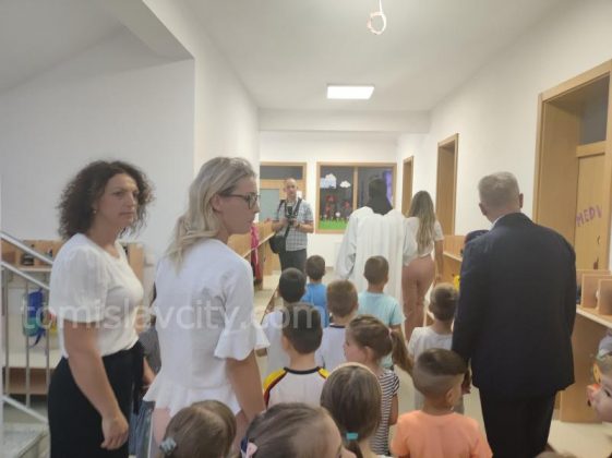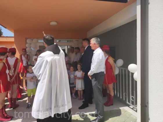 Novi objekt uz prigodnu molitvu blagoslovio je fra Stipe Rotim, a presijecanjem vrpce otvorili su ga Zvonko Milas, državni tajnik Središnjeg državnog ureda za Hrvate izvan Republike Hrvatske i općinski načelnik Ivan Buntić u čemu su im pomogla vrtićka djeca.